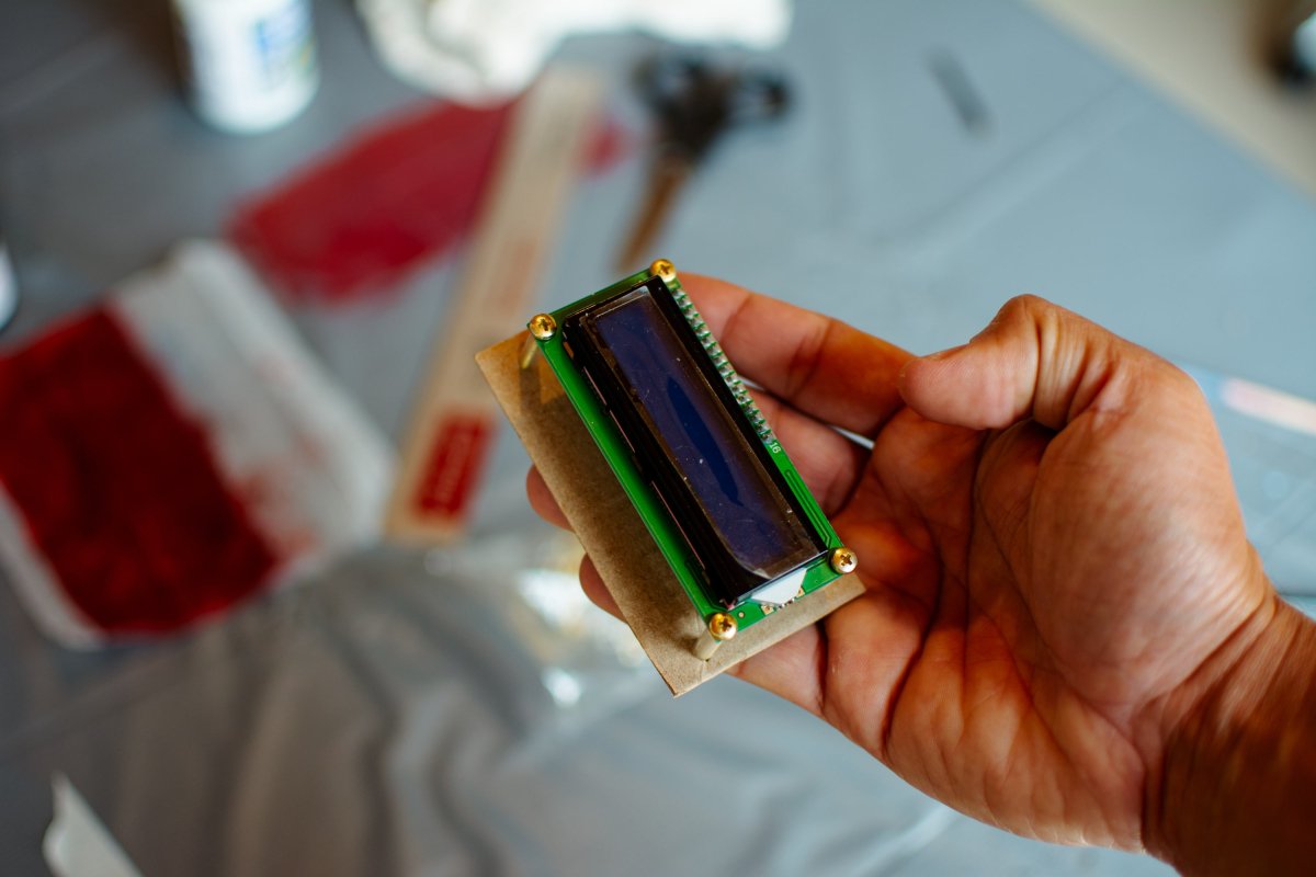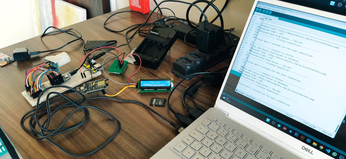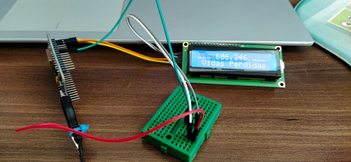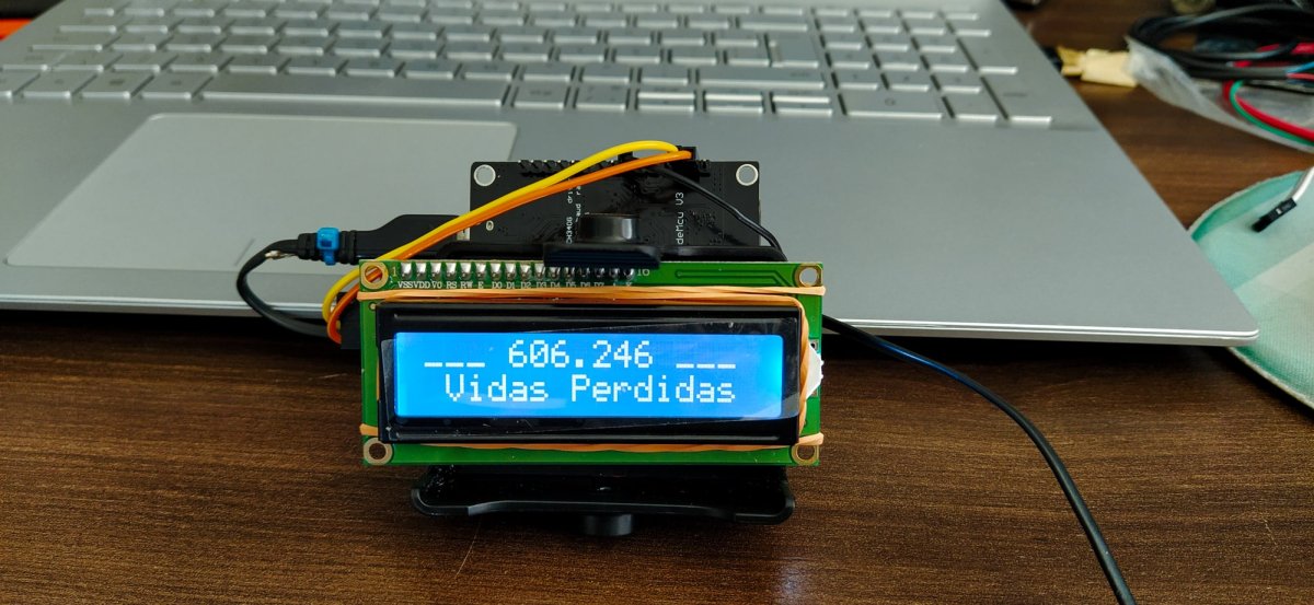 Funcionamento: A obra acessa dados de mortos da covid no Brasil em tempo real a partir de um banco de dados na Internet, e o exibe em seu display.