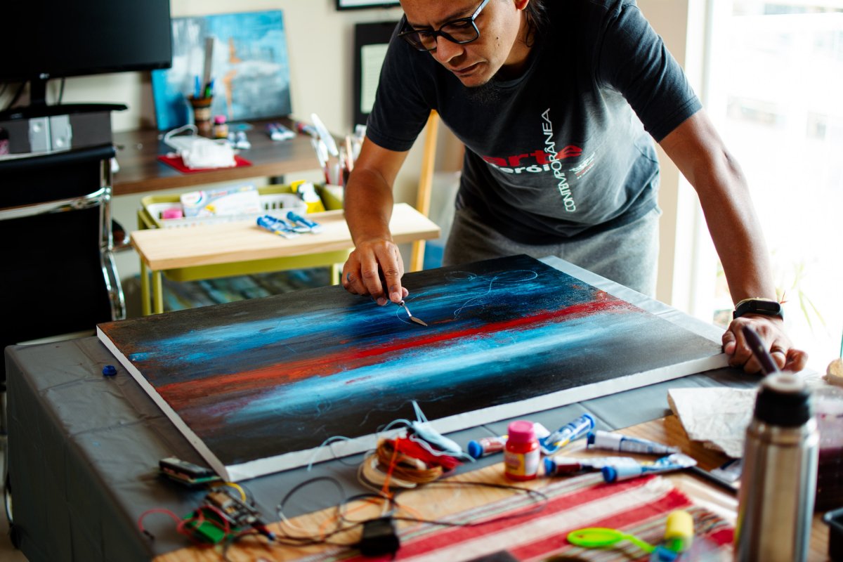 Técnica: Acrílica sobre tela e dispositivos eletrônicos